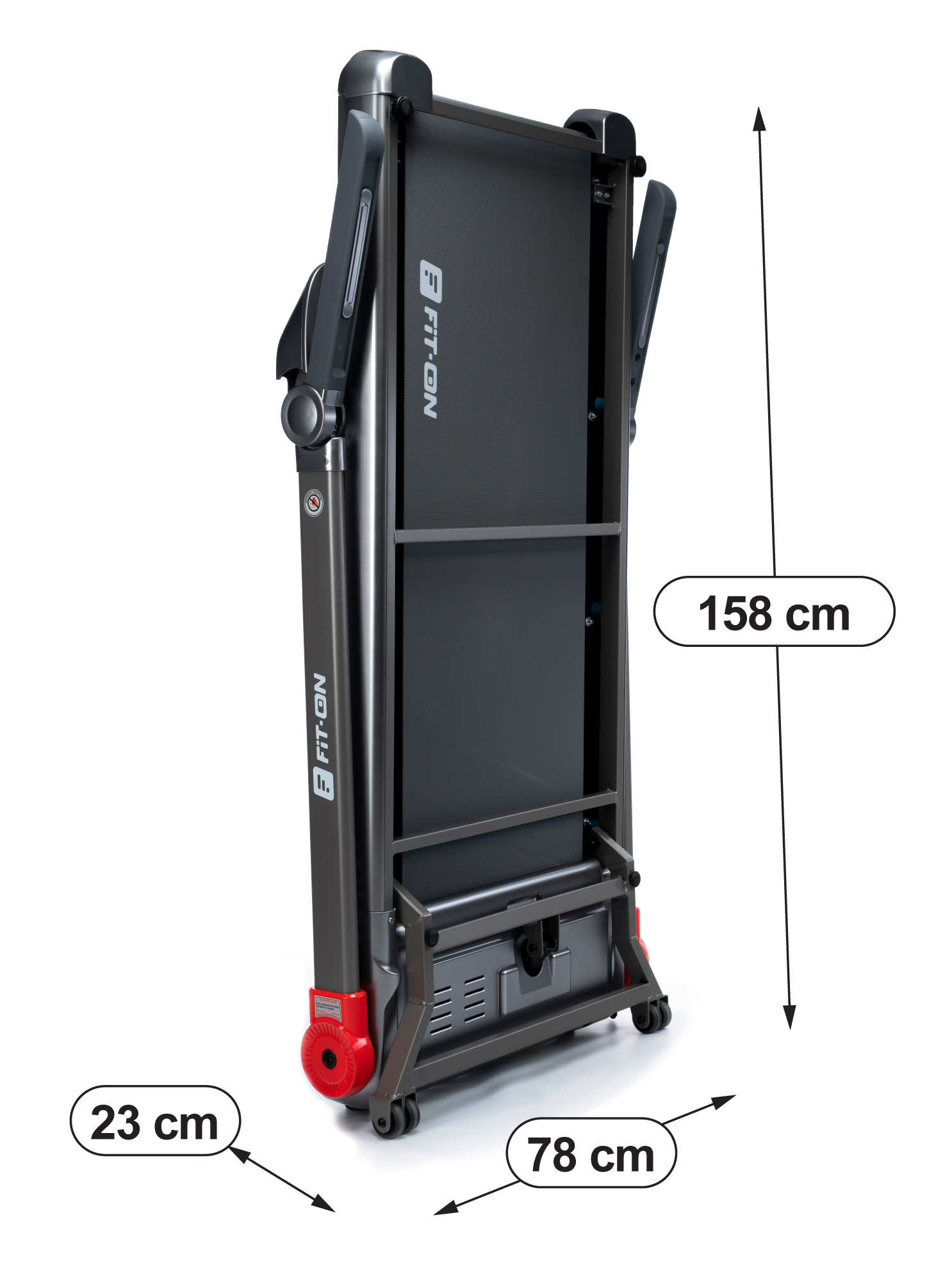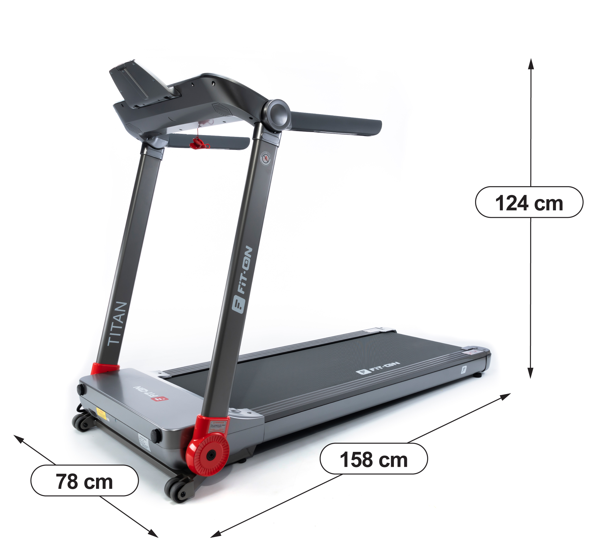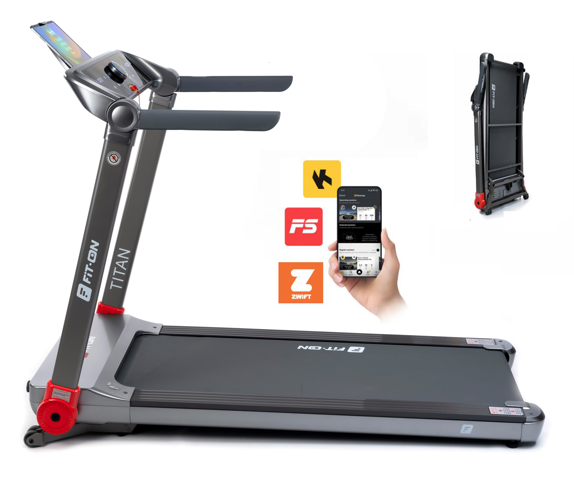Fit-On Titan витримує навантаження до 120 кг , має просторе бігове полотно 126×46 см , оснащене мотором 2.5-3 к.с. та автоматичним регулюванням кута нахилу. Це дозволяє зручно займатися як новачкам, так і досвідченим спортсменам.