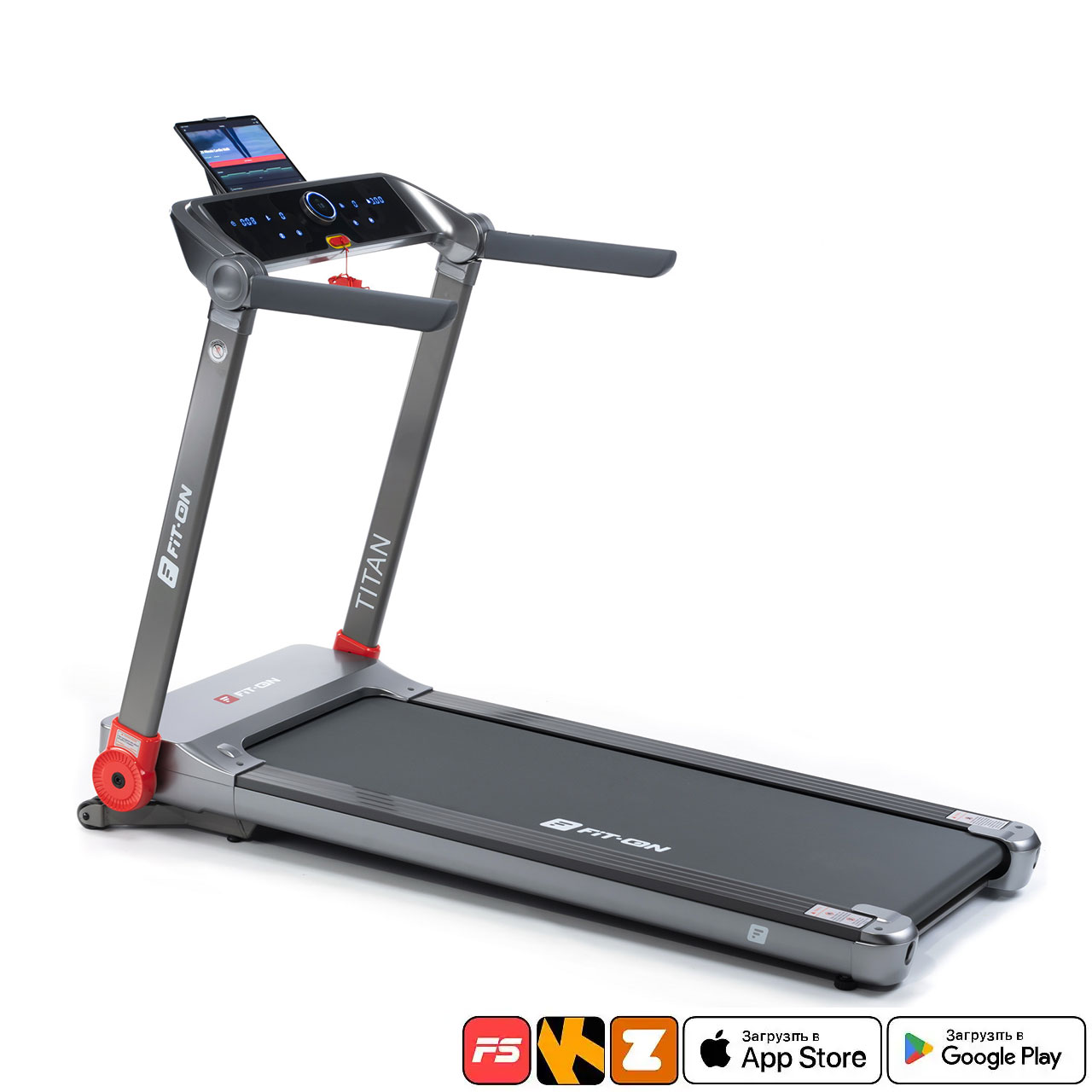 Бігова доріжка Fit-On Titan – це надійний та функціональний кардіотренажер для домашніх занять. Вона поєднує у собі високу потужність, компактність та сучасний дизайн. Завдяки складній конструкції доріжка легко розміщується навіть у невеликій квартирі, а інтеграція з фітнес-додатками відкриває нові можливості для тренувань.