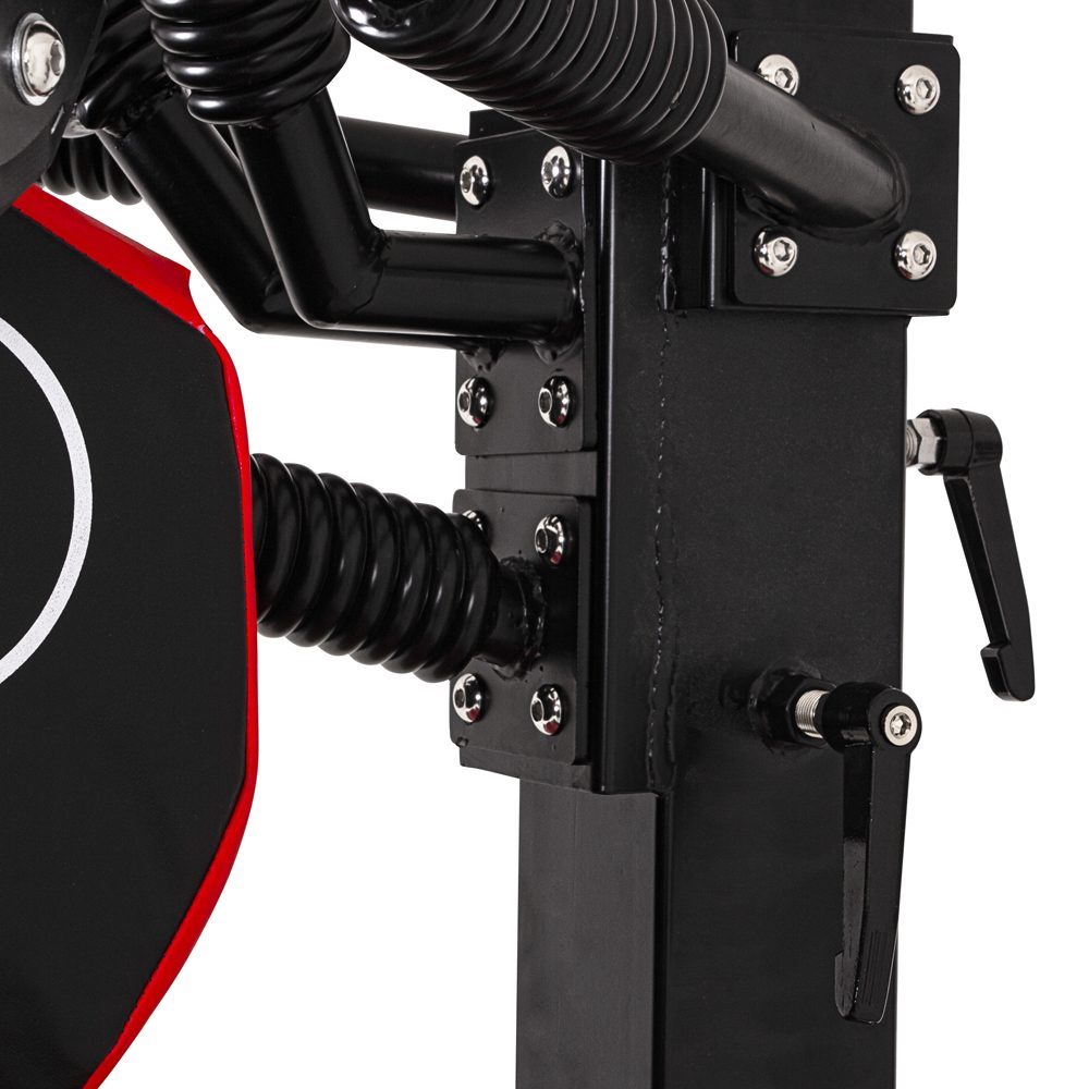 Регульований тренажер BOX Tower MMA Pro для відпрацювання ударів із суперволоконної шкіри, запатентована конструкція пружинного важеля забезпечує оптимальне поглинання ударів для максимальної ефективності та запобігання травмам. Форма красивіша, принесе вам новий досвід.